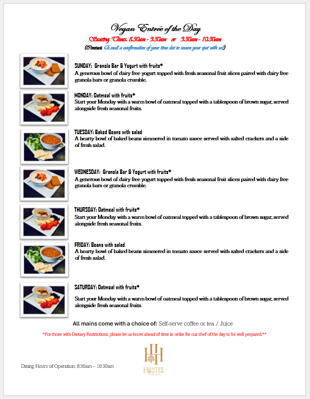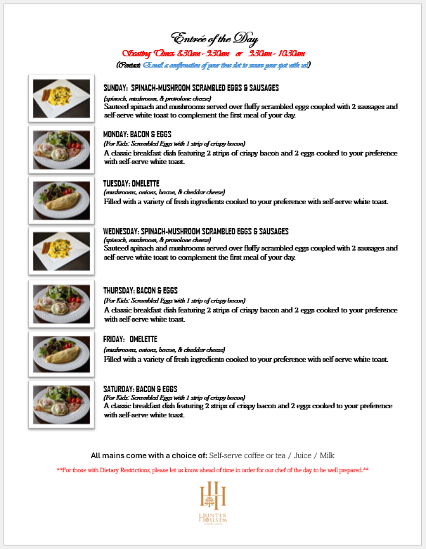 Begin your mornings in Vancouver with the perfect balance of comfort and indulgence with our chef's thoughtfully curated and freshly made Entrée of the Day breakfast or help yourself to the self-serve Continental Breakfast. Accompany your dish with fresh pastries & bread baked by our talented host, toast, and cereal.